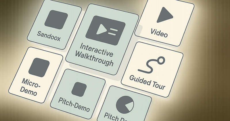 If you search "demo types" you'll find a hundred posts that list demo formats — live demo, video demo, interactive demo, recorded demo, screencast, click-through. Then they tell you to "pick the one that fits your audience." That's not a framework, that's a menu.